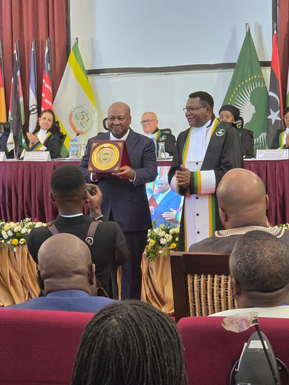 La cérémonie s’est déroulée en présence de Son Excellence John MAHAMA, président de la République du Ghana, invité d’honneur de l’événement. Cette rencontre a permis de renforcer la coopération entre la Cour africaine et les institutions nationales des droits de l’homme, notamment à travers l’organisation d’une session de renforcement des capacités des INDH. La rencontre a été très fructueuse ! Le président Blaise TCHIKAYA et le Pr James MOUANGUE KOBILA ont discuté de la mise en œuvre du mémorandum d’accord signé en juin 2024 entre le RINADH et la CrADHP.